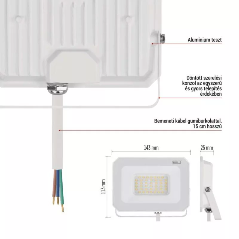 a diffúzor anyaga: üveg|a felhasznált fényforrás energiaosztálya: –|a fényerőszabályozás típusa: –|akkumulátor: nem|AKKU világítási idő: nincs megadva|áramerősség: 130 mA|bevezetőkábel anyaga: gumi|bevezetőkábel típusa: H05RN-F|dimmelhetőség: nem|élettartam: 15 000 hodin|értékesítési csomagolás: 1 db, doboz|fényáram: 3 000 lm|fényforrás: LED|fényhasznosítás: 100 lm/W|fény színe: természetes fehér|feszültség: 220–240 V~|flicker-free: igen|fogyasztás: 30 W|frekvencia: 50/60 Hz|garancia-időszak: 2 év|használat: felszíni szerelés|kategória: ESSENTIAL|lámpatest: alumínium|mechanikai behatás elleni védelem: nincs megadva|méretek: 143 × 113 ×25 mm|PIR érzékelő: nem|PIR érzékelő hatótávolsága: nincs PIR érzékelő|próbaizzó (tartozék): nem|sorozat: SIMPO|sugárzási szög: 120°|szín: fehér|színhőmérséklet: 4 000 K|színvisszaadási index (CRI): Ra > 80|tápegység-csatlakozók száma: nincs megadva|tápegység-csatlakozó típusa: nincs megadva|tápkábel hossza: 20 cm|táplálás: hálózatról|teljesítménytényező: > 0,9|üzemi hőmérséklet tartomány: -20 °C és +40 °C|védettség: IP65