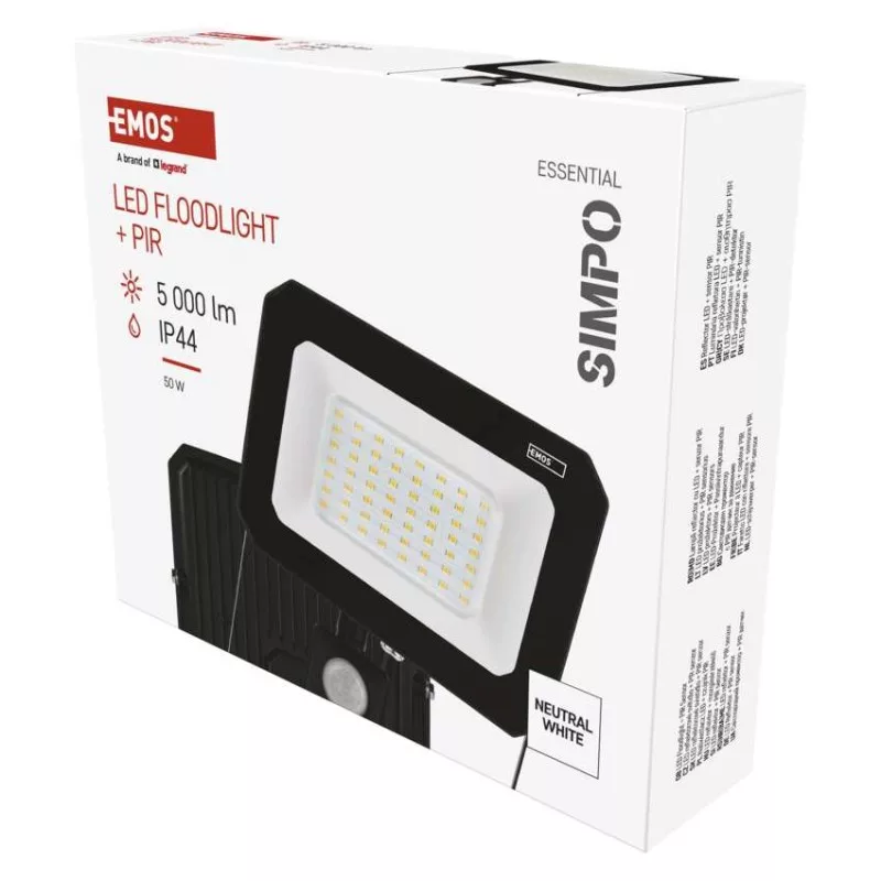 a diffúzor anyaga: üveg|a felhasznált fényforrás energiaosztálya: –|a fényerőszabályozás típusa: #|akkumulátor: nem|AKKU világítási idő: nincs megadva|áramerősség: 215 mA|bevezetőkábel anyaga: gumi|bevezetőkábel típusa: H05RN-F|dimmelhetőség: nem|élettartam: 25 000 óra|értékesítési csomagolás: 1 db, doboz|fényáram: 5 000 lm|fényforrás: LED|fényhasznosítás: 100 lm/W|fény színe: természetes fehér|feszültség: 220–240 V~|flicker-free: igen|fogyasztás: 50 W|frekvencia: 50/60 Hz|garancia-időszak: 2 év|használat: felakasztva szerelés|kategória: ESSENTIAL|lámpatest: alumínium|mechanikai behatás elleni védelem: nincs megadva|méretek: 182 × 199 × 52 mm|PIR érzékelő: igen|PIR érzékelő hatótávolsága: 8 m|próbaizzó (tartozék): nem|sorozat: SIMPO|sugárzási szög: 120°|szín: fekete|színhőmérséklet: 4 000 K|színvisszaadási index (CRI): Ra > 80|tápegység-csatlakozók száma: nincs megadva|tápegység-csatlakozó típusa: nincs megadva|tápkábel hossza: 20 cm|táplálás: hálózatról|teljesítménytényező: > 0,9|üzemi hőmérséklet tartomány: -20 °C és +40 °C|védettség: IP44