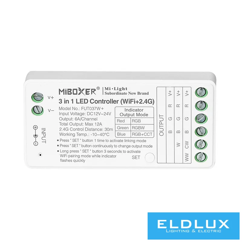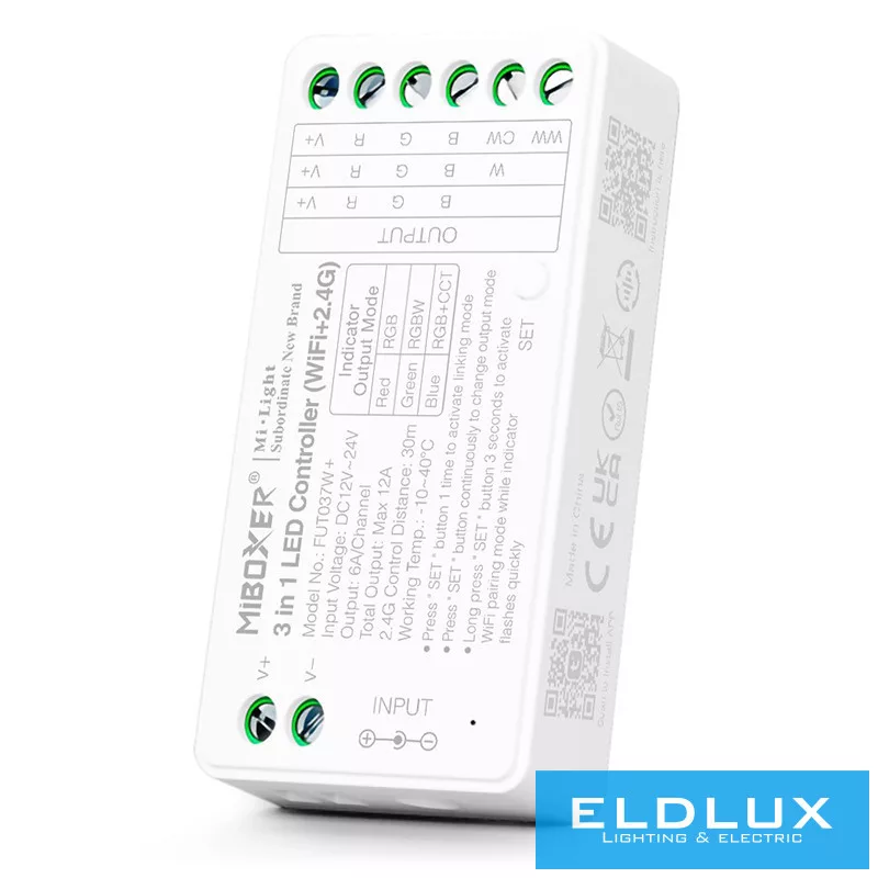 MIBOXER 3in1 WiFi + RF 2.4G RGB/RGBW/RGB-CCT LED Szalaghoz Vezérlő DC:12-24V Max:12A