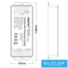 MIBOXER 4 csatornás Jelerősítő DC:12-24V Max:15A 6A/CH