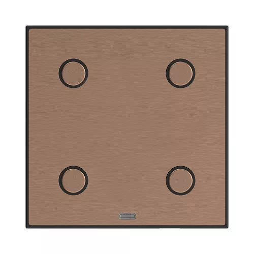 Az iNELS rendszer prémium fém anyagból készült 4 gombos vezérlője - antik réz színben, amely elegáns és kényelmes vezérlést biztosít.