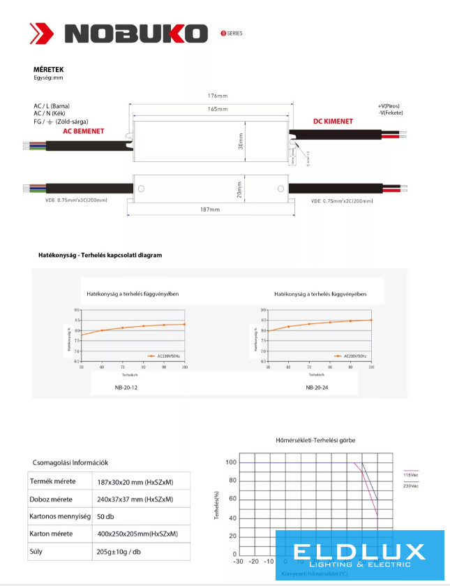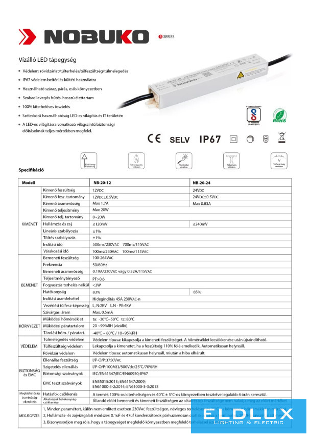 NOBUKO B Series 24V 20W IP67 Kültéri Led Tápegység