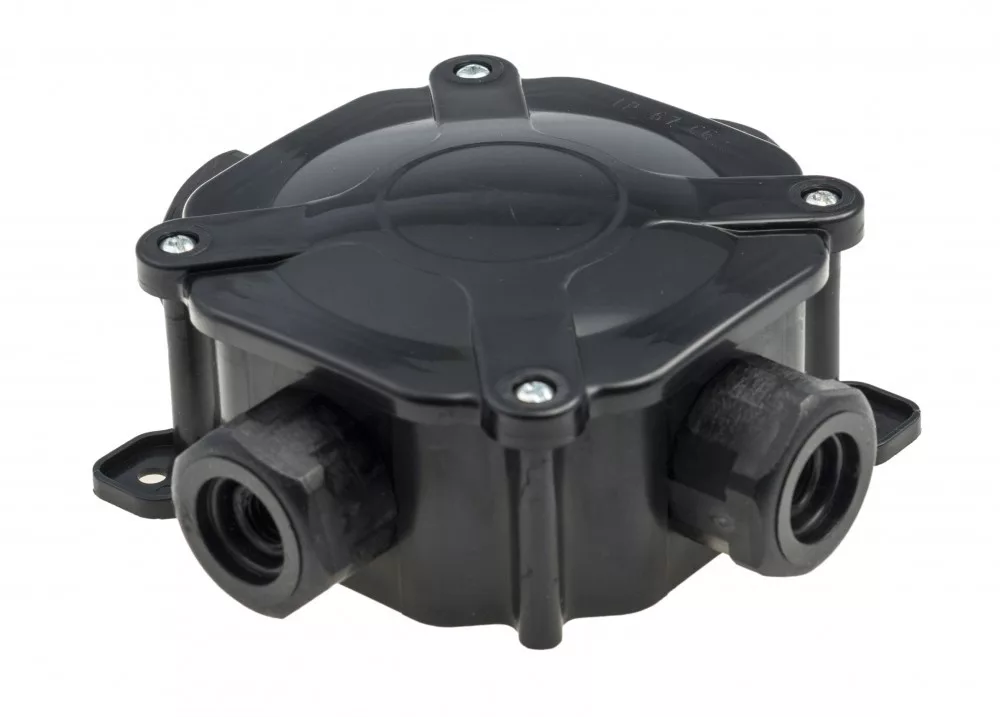 • Termék neve: PG16 elosztódoboz, fekete, 4 bevezetéssel, 5x4mm2 terminál, IP67