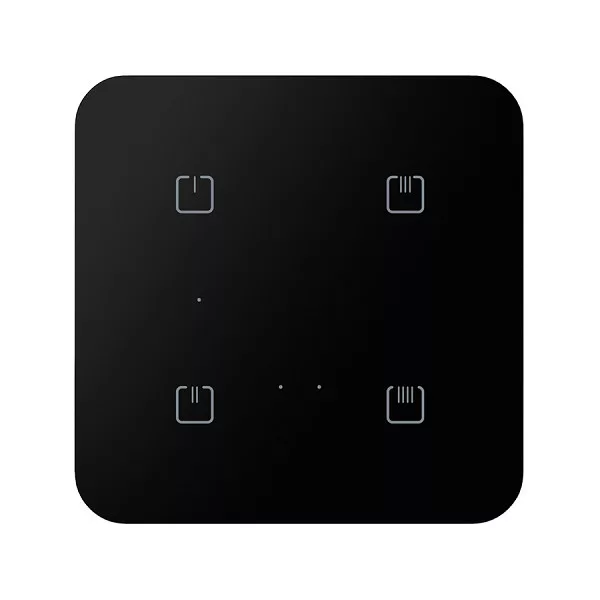 Az iNELS Wireless dimmerrel ellátott üveg vezérlője fényforrások fényáramának szabályozására szolgál. Fekete, lekerekített sarokkialakítású kivitelben.