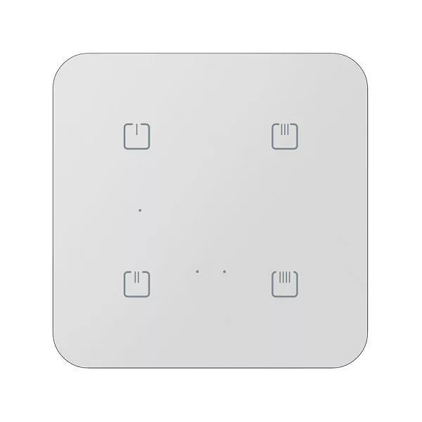 Az iNELS Wireless dimmerrel ellátott üveg vezérlője fényforrások fényáramának szabályozására szolgál. Fehér, lekerekített sarokkialakítású kivitelben.