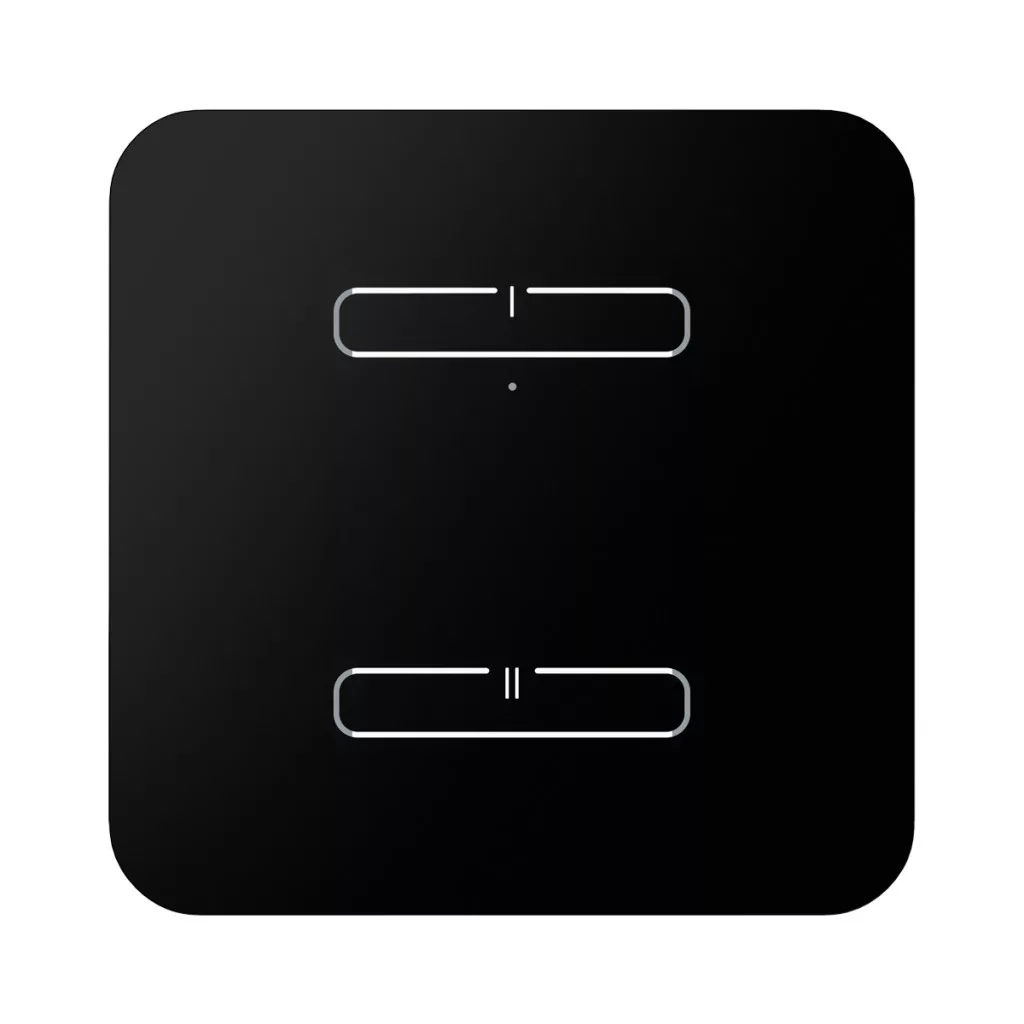 Két érintőgombos fekete üvegfelületű iNELS Wireless vezérlő, ívelt sarokkialakítással