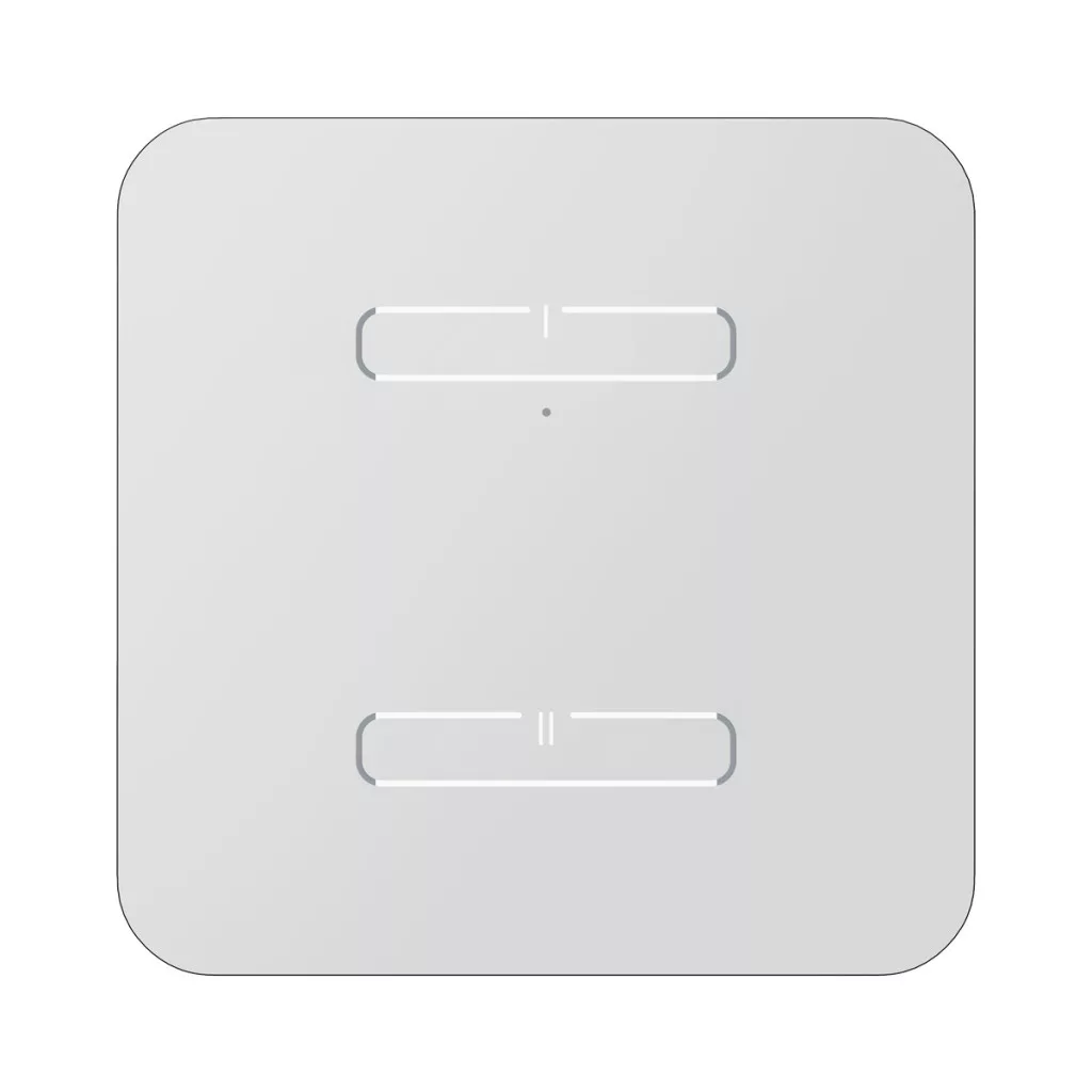 Két érintőgombos fehér üvegfelületű iNELS Wireless vezérlő, ívelt sarokkialakítással