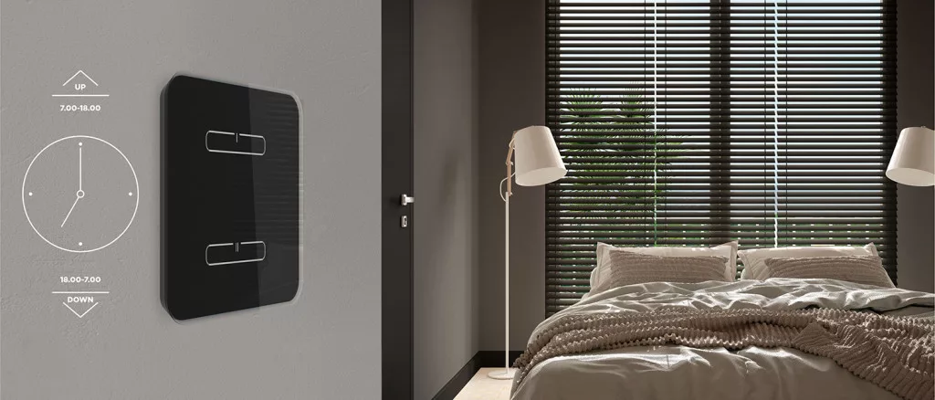 • Az üveglap felülettel ellátott érintőgombos vezérlő, az iNELS Wireless rendszer stílusos vezérlőegysége.