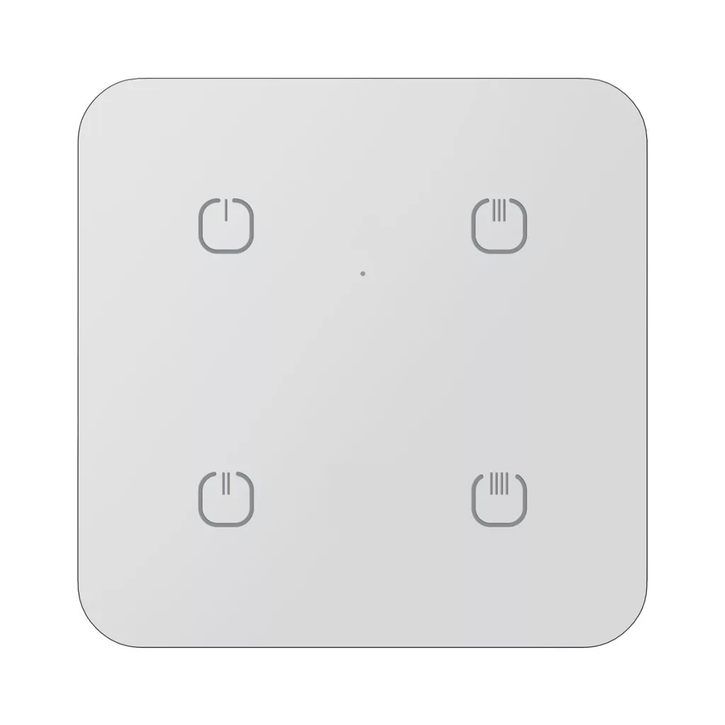 Négy érintőgombos fehér üvegfelületű iNELS Wireless vezérlő, ívelt sarokkialakítással