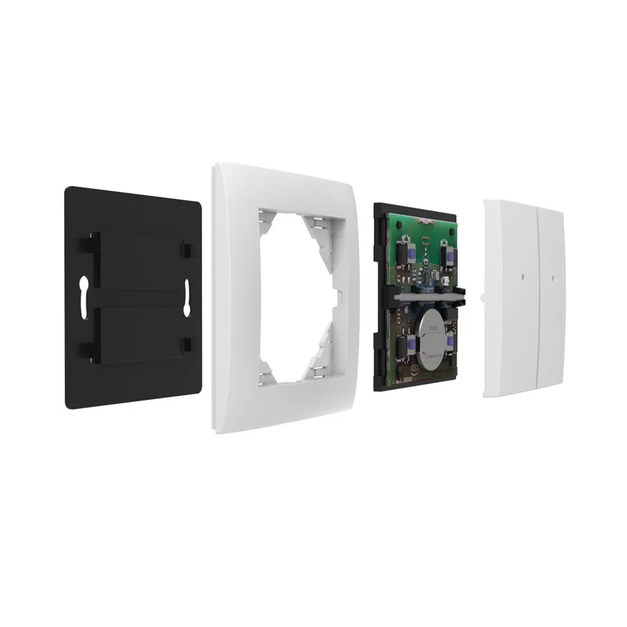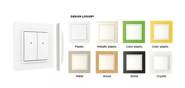 A LOGUS90 szerelvénycsalád kereteivel használható, amelyek többféle anyagban és színben elérhetők (műanyag, üveg, fa, fém, gránit).