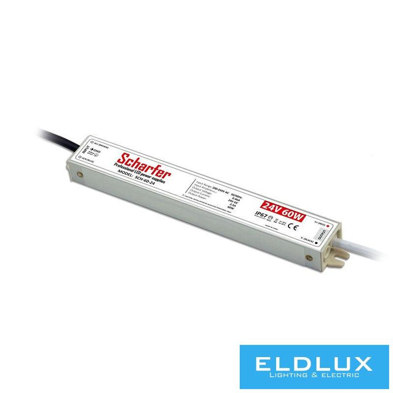 Scharfer kültéri LED Tápegység 24V/2.5A 60Watt IP67 7 év garancia