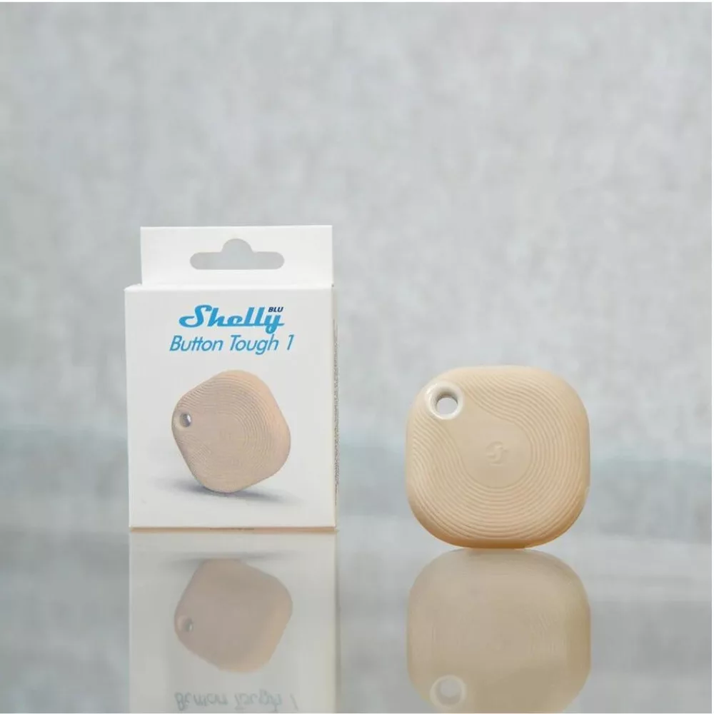 A Shelly Blu Button TOUGH egy Bluetooth távirányító, mellyel egy vagy több Shelly eszköz vezeték nélküli helyi távvezérlése is megoldható. A Shelly Plus és a Shelly Pro sorozatú eszközökkel kompatibilis, hiszen azokban már Bluetooth chip is van. A távirányított Shelly eszközökkel való kommunikációban titkosítást használ. Ha viszont nincs Shelly Plus vagy Shelly Pro szériás eszköz a rendszerben, akkor a távirányítóhoz alkalmazható átjáróként a Shelly BLU Gateway is.A Shelly Blu Button TOUGH Segítségével ki/bekapcsolhatjuk Shelly eszközeinket, vagy akár a Shelly Scene-eket (jeleneteket, okosvezérléseket) is aktiválhatunk, így egyszerre akár több eszközt is vezérelhetünk vele egy gombnyomással.Ez a kivitel IP 65 tanúsítással rendelkezik, és a por és cseppállóság mellett ütésálló is a gumírozott külső borításnak köszönhetően.A különböző típusú gombnyomásokhoz (rövid, hosszú, dupla és háromszoros nyomással) különböző vezérléseket rendelhetünk hozzá, például egy gombnyomásra fel/lekapcsolhatjuk vele a lámpát, egy dupla gombnyomásra vezérelhetjük a redőnyt vele, három gyors gombnyomással bekapcsolhatunk egy ventillátort, hosszú gombnyomással pedig minden lámpát lekapcsolhatunk. Tekintettel arra, hogy helyi távirányítást használ, így villámgyors vezérlést biztosít a Shelly eszközök távirányítására. A Shelly Plus és Pro eszközökön vagy a Shelly BLU Gateway-en át a Shelly cloud-ra való kapcsolódása is biztosított.Apró méretének köszönhetően akár zsebre is vághatjuk, hogy mindig kéznél legyen. Az eszköz egy gombelemmel működik, és a Blueooth Low Energy-nek köszönhetően hosszú, akár 2 éves elem élettartammal képes működni.A gyári specifikáció szerint beltéren 10 méter, kültéren (akadálymentes környezetben) akár 30 méter hatótávolságra számíthatunk.A Shelly Blu a beacon funkciót is bevezeti a Shelly okosotthon eszközök világába: az eszköz pillanatnyi helyzete alapján létrehozott automatizációk egyfajta jelenlét alapú vezérlést tesznek lehetővé, erre építve RSSI alapú szkripteket és jeleneteket is létre lehet hozni a házban való tartózkodási hely alapján.A Shelly Blu Button teljes kompatibilitást kínál az új BTHome Home Assistant protokollal is.A beépített „Keress meg” funkcióval képes fény és hangjelzést adni, hogy könnyen megtaláljuk.A Shelly BLU gomb kompatibilis az Amazon Alexa és a Google Home rendszerrel is.