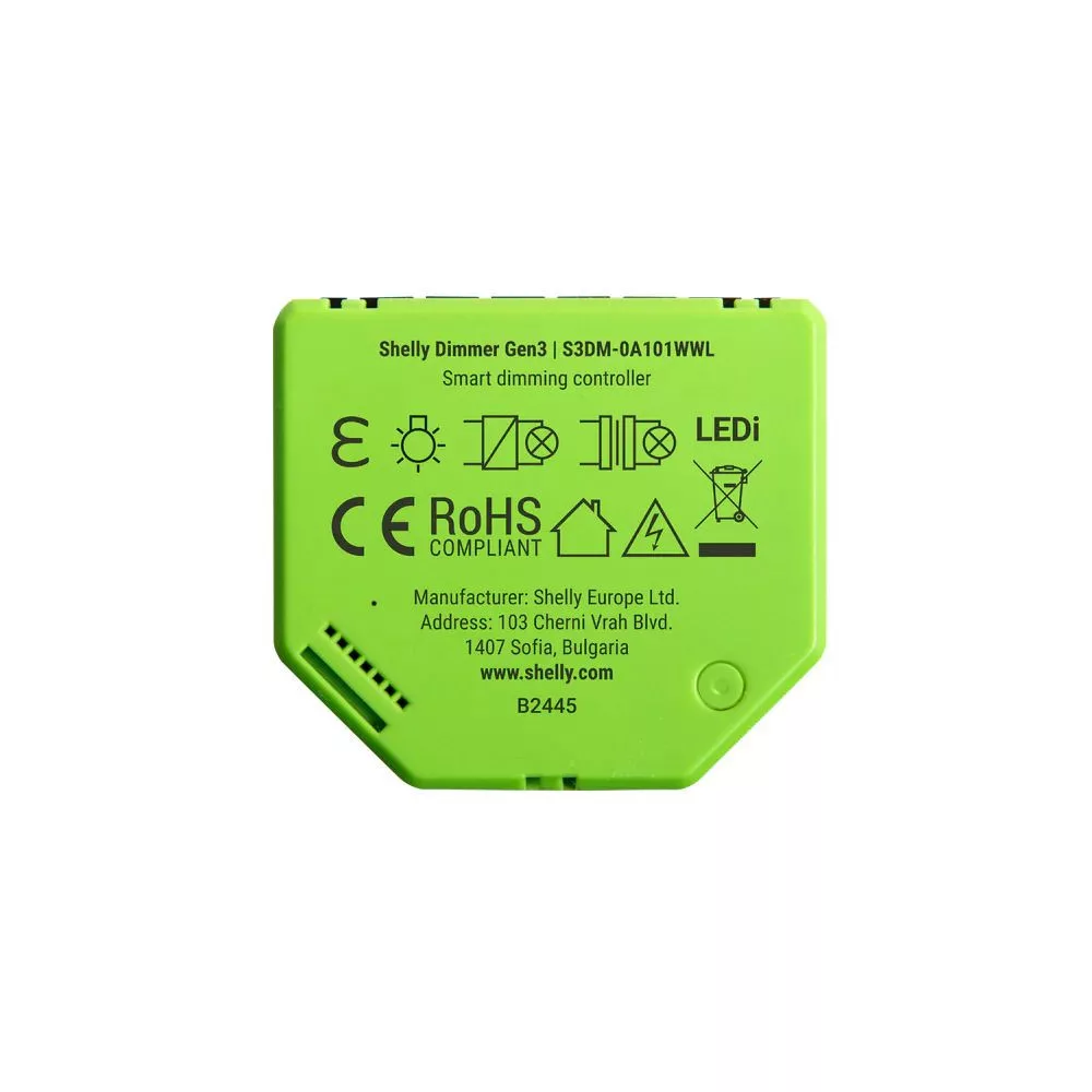 A Shelly Dimmer Gen3 az első generációs Shelly Dimmer2 okosmodul továbbfejlesztett, harmadik generációs verziója. Az elődjéhez hasonlóan ez is képes a vezérelt lámpákat ki- és bekapcsolni, valamint a fényerejüket is szabályozni. Segítségével könnyedén beállíthatjuk a napszakhoz, tevékenységhez vagy hangulathoz illő fényerőt. Nemcsak interneten keresztül, hanem időzítve is vezérelhetjük a lámpákat, akár napkelte vagy napnyugta alapján is.A ki- és bekapcsolást halványítással vagy erősítéssel is tudja szabályozni.Kis méretének köszönhetően akár egy szabványos villanykapcsoló mögé vagy kötődobozba is beszerelhető. A Shelly Dimmer Gen3 alkalmas izzólámpák és halogénlámpák vezérlésére (max. 200W), valamint dimmelhető LED lámpák (max. 150W) vagy ferromágneses transzformátorral szerelt rendszerek (max. 200VA) kezelésére is.Mint minden Shelly eszköz, közvetlenül a Wi-Fi routerhez kapcsolódik, nincs szükség hub-ra vagy átjáróra. Telepíthető akár egyetlen áramkör automatizálásához, vagy teljes ingatlan okosrendszerek részeként is használható.Ez az egyik legkisebb méretű, WiFi-s eszköz okosvezérlésre és fogyasztásmérésre. Apró mérete lehetővé teszi, hogy szabványos kapcsolók, konnektorok mögé vagy kötődobozba szereljük, így távvezérelhetővé válik a világítás vagy bármely más fogyasztó. Gyakori alkalmazása redőnykapcsolók mögött, köszönhetően fejlett redőnyvezérlési módjának.Meglévő kapcsolók mögé szerelve a Shelly Dimmer GEN3 távvezérlést biztosít, miközben a meglévő kapcsolók is funkcionálisak maradnak. Ideális megoldás okosításra. A relé tartalmaz kapcsoló bemenetet, így a fali kapcsolók továbbra is használhatók, miközben az eszköz Wi-Fi-n keresztül is vezérelhető. Az alkalmazásban időzítések és kapcsoló letiltása is beállítható.Kompatibilis kétállású és billenő kapcsolókkal, alkalmas alternatív és keresztkapcsolásokra is. Auto-off funkciója impulzuskapcsolásra is beállítható.Főbb jellemzők Kompatibilis fázisvezérelt (leading edge) és ellenfázisú (trailing edge) dimmeléssel Működik nullavezeték nélkül is, de nullavezetékkel stabilabb Maximális terhelés: 200 W nullavezeték esetén Védelmek: túlmelegedés, túlterhelés, túlfeszültség Kompakt méret: 42 x 36 x 14 mm – elfér szabványos kapcsolók mögött Lokális vezérlés kapcsolóval és appból vagy automatizálássalCsatlakozási lehetőségek Wi-Fi: 2.4 GHz, 802.11 b/g/n Bluetooth: gyors párosítás Támogatott protokollok: MQTT, CoAP, WebSocket Helyi vezérlés – nem szükséges felhőkapcsolatA Shelly Dimmer GEN3 a bemeneti 110V-240V AC-t kapcsolja és szabályozza (max. 16A), ezért nem alkalmas szárazkontakt (feszültségmentes) kapcsolásra! Fontos: a fázis és a kapcsolt fázis azonos ágról kell érkezzen – a Dimmer Gen3 nem alkalmas többfázisú működésre.KÜLSŐ BORÍTÁS: A GEN3 méretei megegyeznek a GEN2-vel, így a DIN adapterek is kompatibilisek. A burkolaton bekötési rajz is található.BLUETOOTH PÁROSÍTÁS: Az új beépített Bluetooth chip révén gyors párosítást tesz lehetővé.ERŐSEBB PROCESSZOR, TÖBB FUNKCIÓ: Az új ESP-Shelly-C3 processzor 8 MB memóriával gyorsabb működést és továbbfejlesztett funkciókat biztosít a GEN3 termékcsaládban.TÚLMELEGEDÉS ÉS TÚLFESZÜLTSÉG VÉDELEM: A Shelly GEN3 beépített túlmelegedés-, túlfeszültség- és túlterhelés-védelemmel rendelkezik.SHELLY GEN3 FUNKCIÓK: Támogatja a HTTP/HTTPS webhook-okat Támogatja a napkelte/napnyugta szerinti időzítéseket (±23 óra) Akár 20 db offline időzítés is kezelhető Támogatja az mjS szkripteket és több szkript együttes futtatását Támogatja a virtuális komponenseket és HTTP alapú parancsokat Bluetooth átjáró funkció, felhőmentes kommunikáció Shelly BLU eszközökkelIdőzíthetősége: Heti ki/bekapcsolási időzítések Napkelte/napnyugta alapú időzítések Auto-on és auto-off funkciókTámogatott üzemmódok: Cloud mód: vezérlés Shelly Cloud app-ból és webes felületről LAN mód: helyi hálózaton keresztüli vezérlés WiFi Access Point mód: önálló hálózat létrehozásaFelhős üzemmódban a fogyasztási adatok menthetők és letölthetők a Shelly Cloud fiókból.Cloud módban a Shelly Scene funkció segítségével más Shelly eszközök is vezérelhetők összetett szabályok szerint. Fix IP címek esetén LAN módban is működnek a Direct Device-to-Device vezérlések HTTP parancsokkal.A Shelly Dimmer GEN3 ingyenes okostelefon app-pal és saját Cloud szolgáltatással is működik.Integrációk:A Shelly gyári firmware-rel is egyszerűen integrálható: MQTT HomeyHomeSeer ioBroker Home Assistant openHAB Domoticz SYMCAN nymea Hubitat Hoobs REST APISzerelhetősége: Beépíthető szabványos kapcsolóaljzatba DIN-sín adapterrel is telepíthető Kompatibilis a Shelly Plus Add-On-nalMűszaki adatok: Bemeneti feszültség: 110–240 V AC ±10%, 50/60 Hz Maximális kimeneti teljesítmény:Dimmelhető LED: max. 150 WIzzó: max. 200 WHalogén: max. 200 WVasmagos trafó: max. 200 VAElektronikus trafó: max. 200 W Minimális terhelés nullavezeték és Bypass nélkül: 20 W Kapcsolat: Wi-Fi 2.4 GHz + Bluetooth Működési hőmérséklet: –20 °C és +40 °C Relatív páratartalom: 30%–70% Méret: 42 x 36 x 14 mm Fogyasztás: <1,5 W Burkolat: műanyag, lime szín Nullavezeték nélkül is működik: igen, Shelly Bypass modul ajánlott hozzá ebben az esetben Fogyasztásmérés csak nullavezetékkel való bekötés esetén lehetséges