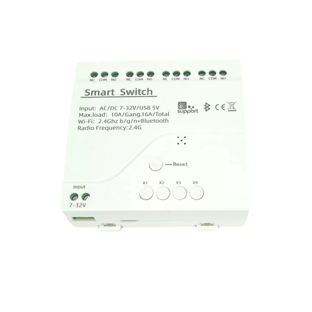 A SmartWise 4 áramkörös okoskapcsoló reléje ideális megoldás kertkapu, garázskapu, kapunyitók, vagy más elektromos eszközbe vagy áramkörökhöz építve azok távoli, interneten keresztüli vezérlésére. Motorvezérléshez (ahol két vagy többirányú mozgatás szükséges) is ideális a termék 2 vagy 4 áramkörös verziója, mivel a relé támogatja az úgynevezett interlock (más néven reteszelő- vagy váltó-kapcsolás) üzemmódot, azaz egyik áramkör kapcsolásakor lekapcsolja a többi áramkört.Mint minden más SmartWise eszköz, a SmartWise 5V-32V okosvillamossági eszköz is kompatibilis a Sonoff termékeket is vezérlő eWeLink mobiltelefon app-pal. Ez tehát egy olyan WiFi-vel felszerelt, NO/NC kapcsolást is támogató relé, mellyel zárhatunk vagy meg is szakíthatunk áramköröket, időzíthetjük is a kapcsolást, és az interneten át is vezérelhetjük a relét és a rá kötött elektromos eszközt.Ez a Wi-Fi + eWeLink-Remote (Bluetooth) verzió, mely SmartWise eWeLink-Remote távirányítókkal és vezeték nélküli fali kapcsolókkal is ki/bekapcsolható.A WiFi-s okosrelé a működéséhez 5V USB-s vagy 7V-32V AC/DC közötti tápfeszültséget igényel.A kapcsolt áramkörök a relé tápfeszültségétől függetlenek, a relé a COM bemenetre kötött 90-250V/10A váltóáramot vagy 0-30V/10A egyenáramot tud kapcsolni NO vagy NC üzemmódban is. Feszültség nélküli, azaz potenciál mentes, ún. száraz kontaktus kapcsolásra is alkalmas.Internet-kapcsolattal rendelkező iOS (Apple) vagy Android mobiltelefonon futó App segítségével távolról vezérelhetjük a kapcsolót, és beállíthatunk időzített ki/be kapcsolást is. Az App-ból való távoli elérés lehetősége megosztható a családtagokkal is.Kompatibilis Amazon Alexa és Google Assistant hangvezérléssel.Átállítható impulzuskapcsolási üzemmódba is, melyben pl. 1 másodperc kapcsolás után megszakítja az áramkört, vagy pl. 1 másodperc megszakítás után újra zárja az áramkört. Terméktulajdonságok: Wi-Fi + eWeLink-Remote (Bluetooth) verzió - nem csak mobiltelefon app-ból kapcsolható az interneten át, hanem SmartWise eWeLink-Remote (BT) távirányítóval / fali kapcsolóival is vezérelhető. Vezérelt áramkörök száma: 4; Relé működéséhez szükséges tápfeszültség: 5V DC USB vagy 7V-32V AC/DC Vezérelt áramkör: feszültség-mentes száraz kontaktus vagy 90-250V/10A váltóáram vagy 0-30V/10A egyenáram is kapcsolható, (a relé tápfeszültségétől függetlenül) NO/NC bekötést és kapcsolást is támogat - a relé képes áramköröket zárni és megszakítani is Magyar nyelvű mobil App – Ingyenes iOS és Android mobil App: eWeLink, magyar nyelven is Állapotlekérdezés – A mobil App-ban látszik a relé aktuális állapota (be vagy kikapcsolt) Távvezérléssel való KI/BE kapcsolás – Bárhol is van, mostantól a mobiltelefon app-ból az interneten át távolról ki vagy be kapcsolhatja a relét (és a rá között eszközöket) Időzítés – Számos időzítési funkció elérhető: egy konkrét időpont beállítása, ismétlődő időpontok beállítása, visszaszámláló / timer, ciklus. Időzített kikapcsolás - beállítható a relé arra is, hogy minden bekapcsolás után bizonyos idővel automatikusan kikapcsoljon Impulzus kapcsolás: beállítható a relé impulzus kapcsolásra is, azaz egy megadott hosszúságú rövid kapcsolásra (pl. jellemzően 0,5 vagy 1 másodperc), a négy áramkör külön-külön beállítható erre. Megosztható másokkal – Hozzáférést adhat pl. családtagjainak vagy másoknak a távvezérléshez Csoportok, szobák - csoportokba és szobákba rendezheti Sonoff és SmartWise okoseszközeit az eWeLink app-ban Okosvezérlés (Scene) – Az Okosvezérlés / Scene eWeLink app funkció segítségével létrehozhat különböző Sonoff / SmartWise eszközök közötti feltételes vezérléseket is. Például egy TH10 reléhez kapcsoló hőmérséklet vagy páratartalom érzékelő adatai alapján kapcsolhat egy Sonoff S26 konnektort, vagy egy Sonoff RF Bridge átjáróhoz párosított RF mozgásérzékelő jele alapján kapcsolhat egy Sonoff vagy SmartWise okos villanykapcsolót is, de két WiFi-s eszköz be és kikapcsolását is összehangolhatja (pl. egy Sonoff villanykapcsoló WiFi-n át bekapcsolhat egy Sonoff WiFi-s okoskonnektort). Kompatibilitás – Hozzákapcsolható hangvezérlés érdekében Amazon Alexa-hoz, Google Assistant-hoz, és Google Nest-hez is A Sonoff és testvérmárkája, a SmartWise eszközök egymással kompatibilisek, egyaránt az eWeLink gyári app-ot használják. Az eWeLink app már magyar nyelven is elérhető!„NO” és „NC” típusú vezérléseket is beköthetsz vele:A relének három kimenete van: a „COM”, a bemenet, avagy az NC és az NO esetén közös pólus, az „NO”, azaz „Normally Open” = "Alaphelyzetben nyitott" és az „NC”, azaz „Normally Closed” = "Alaphelyzetben zárt". NO és COM bekötése esetén: az áramkör alapértelmezésben nyitva van, és a relé kapcsolásakor a COM (közös) és az NO pólus közötti áramkör záródik.NC és COM bekötése esetén: az áramkör alapértelmezésben zárva van (feszültség alatt van), és a relé kapcsolásakor szakad meg az áramkör. (Ez a bekötés használatos például olyan elektromos kapunyitók esetén, ahol a kapu az áramkör megszakadásakor nyílik.)