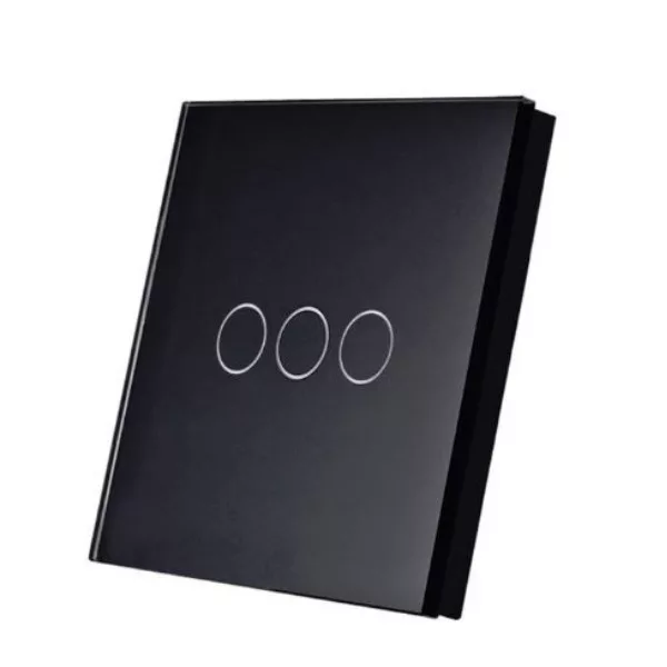 SmartWise TEREM3B, 3 gombos vezeték nélküli eWeLink-Remote kapcsoló, fekete érintős előlappal