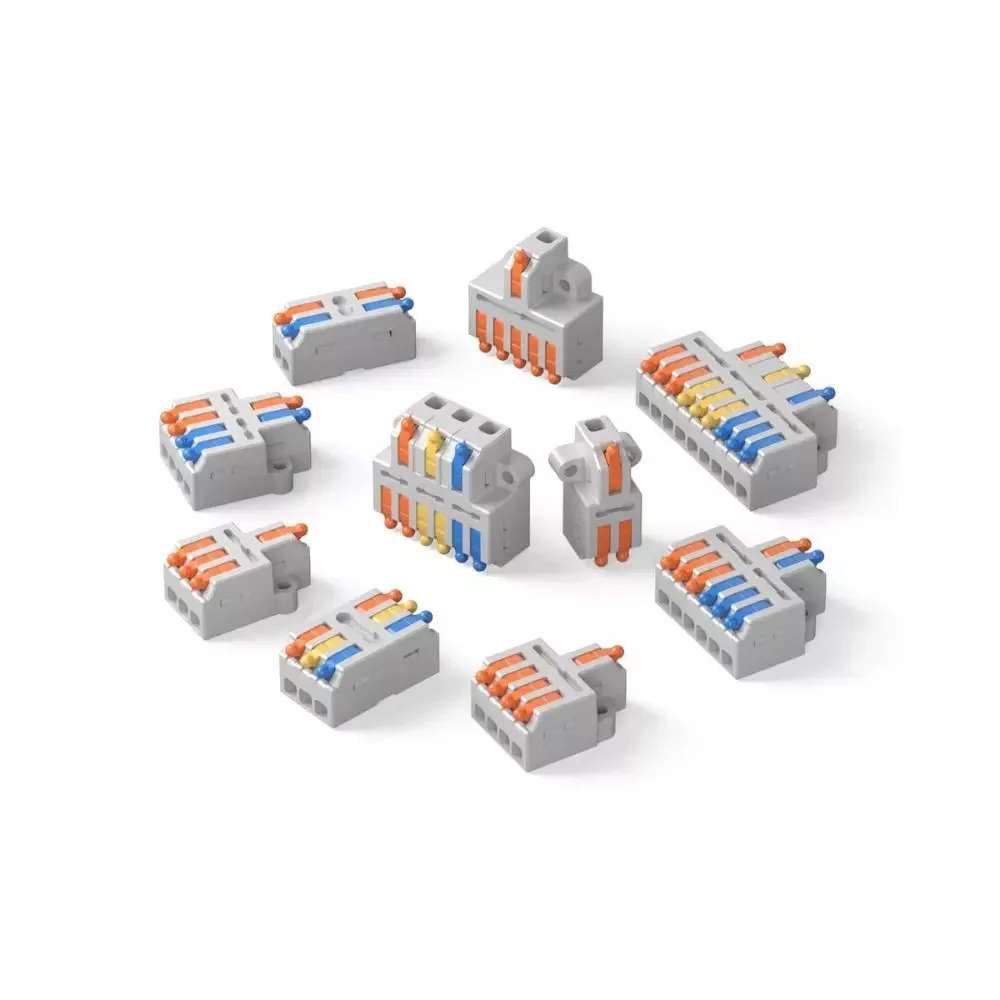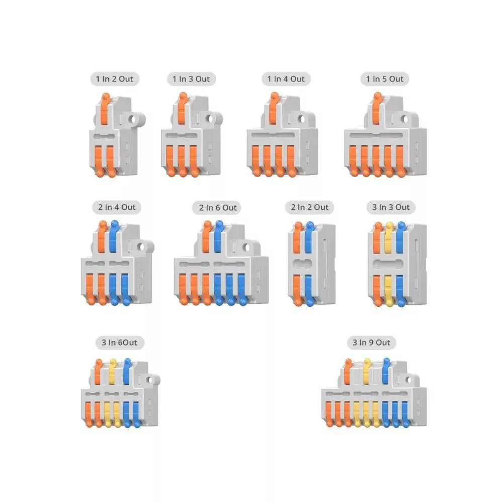 A Sonoff vezeték összekötői segítenek a vezetékek gyors, egyszerű és biztonságos összekötésében és elosztásában, és átlátható és biztonságos vezetékezést tesznek lehetővé. Tömör, sodrott vagy lágy rézhuzalok csatlakoztatására is használható. Kompatibilis a 0,2-4 mm² (AWG 28-12) vezetékekkel, max. 32A névleges áramerősséget is támogatnak.A készletben összesen 54 darab, 10 különböző féle összekötő / elosztó elem található. Az elosztós gyorscsatlakozók között van kettes és hármas elosztó is, egy / kettő / három vezetékes elosztáshoz is, mely használható fázishoz / fázis + nulla / fázis + nulla + védőföld elosztásához is.A termék jellemzői:Biztonságos és megbízható: A csatlakozók burkolata kiváló minőségű PC szigetelőanyagból készül. A huzalcsatlakozók előnye a hosszú élettartam, a korrózióállóság, a magas hőmérséklettel szembeni ellenállás, az öregedési ellenállás, és kitűnő szigetelés. Újrafelhasználható és kombináltan használható - Minden csatlakozó elem újra felhasználható. A kis kar felhúzásával a vezeték oldható, így a csatlakozó máshol felhasználható. Több csatlakozó egymás mellé sorolható az igényeknek megfelelően.Kompatibilitás - Alkalmas lágy és kemény tömör, és sodort vezetékekhez is, 0,2-4 mm²/AWG 28-12 vezetékekhez alkalmas.Egyszerű használat - Nincs szükség szerszámra a vezetékek csatlakoztatásához, csak nyisd fel a fogantyút 90°-ig, helyezd be a kábelt és zárd le a fogantyút. Széleskörű alkalmazás - A csatlakozókat széles körben használják mennyezeti bekötéseknél, épületek kábelezésében, hajókban, világításoknál, foglalatokban, csillárokban, kapcsolókban, autókban, hangszórókban, elektromos dobozokban és ventilátorvezérlőkben is.