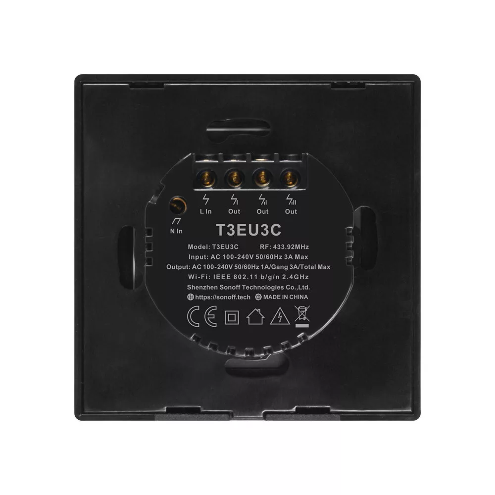 A Sonoff TX a Sonoff okos lámpakapcsoló termékcsaládjának legújabb, 2019. nyáron megjelent verziója. Ez az egy lámpa/áramkör kapcsolására szolgáló verzió.Elődjéhez, a Sonoff T1-hez képest csak az előlap design-ja változott meg, a fehér mellett megjelent fekete színben is, valamint elérhető lett háromkapcsolós csillárkapcsolója is. A korábbi verzióhoz hasonlóan ez is elegáns üveg előlappal, érintőkapcsolóval van felszerelve. Beépített WiFi chip-jének köszönhetően internet-kapcsolattal rendelkező iOS (Apple) vagy Android mobiltelefonon futó App segítségével távolról is vezérelhetjük a lámpakapcsoló ki/be kapcsolását, és beállíthatunk időzített ki/be kapcsolást is. Az érintőkapcsoló segítségével a falon is kapcsolhatjuk természetesen a lámpát, ahogy egy hagyományos érintőkapcsolóval tennénk azt. A távoli elérés lehetősége megosztható a családtagokkal is. Tökéletes megoldás a bármilyen lámpa okosvezérléséhez. Használatával kényelmesen távolról is fel vagy lekapcsolhatjuk a kívánt lámpákat akkor is, amikor nem vagyunk otthon. Betörésmegelőzési megoldásként használva, beprogramozhatunk rajta időzített ki vagy bekapcsolást, hogy a külvilág azt higgye, otthon tartózkodunk.A TX T3 verzió a fekete előlapos verzió. A Sonoff T1-hez hasonlóan ez is fel van szerelve 433MHz-en működő rádióvezérléssel, melynek köszönhetően hozzáilleszthető rádiós távirányító, valamint a SmartWise rádióvezérlést alkalmazó kapcsolója is, amivel vezetékezés nélkül lehet alternatív kapcsolókat hozzákapcsolni a bevezetékezett kapcsolóhoz.A v3.5.4 eWeLink app verzió óta a kapcsoló átállítható impulzuskapcsolás (billenőkapcsoló) üzemmódra, illetve beállítható arra is, hogy a bekapcsolást követően előre megadott időt követően kapcsoljon le, azaz lépcsőházi időzített kapcsolásra is alkalmas.A TX T3 EU kapcsolók elegáns érintős üvegfelületén az érzékeny kapcsolórész szinte láthatatlan, amíg a kapcsoló nincs bekötve, 90% fényerővel világít, amikor a lámpa fel van kapcsolva, és 30% fényerővel, amikor standby-ban van. Terméktulajdonságok:Érintőkapcsoló - az üvegelőlapon érintőkapcsoló és az aktív WiFi kapcsolatot mutató LEDEU és magyar szabvány szerinti méret: 86x86mm a kapcsoló előlapja, ami a magyar szabvány szerinti előlap mérete, 34mm a teljes mélysége, a falba benyúló doboz szintén a magyar szabvány szerinti.433MHz-es rádióvezérlés támogatása – rádiós távirányítóval is kapcsolható, illetve SmartWise rádiós alternatív kapcsoló kapcsolható hozzá.Távvezérléssel való KI/BE kapcsolás – Bárhol is van, mostantól távolról ki vagy be kapcsolhatja a lámpakapcsolóval a világítástMobil App – Ingyenes iOS és Android mobil App: eWeLinkÁllapotlekérdezés – A mobil App-ban látszik a lámpakapcsoló aktuális állapota (be vagy kikapcsolt)Időzítés – Számos időzítési funkció elérhető: egy konkrét időpont beállítása, ismétlődő időpontok beállítása, visszaszámláló / timer.Megosztható másokkal – Hozzáférést adhat pl. családtagjainak a távvezérléshezKészülékcsoportok – Csoportba rendezheti készülékeit, és egy kattintással többet is ki vagy bekapcsolhatOkoscsoportok – Hőmérséklet, páratartalom vagy más külső érzékelőkhöz kapcsolva akár automatikusan is vezérelheti a ki/be kapcsolástKompatibilitás – Hozzákapcsolható hangvezérlés érdekében Amazon Alexa-hoz, Google Assistant-hoz, valamint IFTTT-hez és Google Nest-hez is Fontos: a WiFi-s lámpakapcsoló működéséhez nem csak fázisvezeték (ami minden korrekten bekötött kapcsolóaljzatban megtalálható), hanem nullavezeték is szükséges a kapcsolóaljzatban!