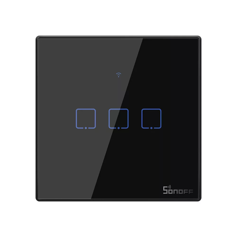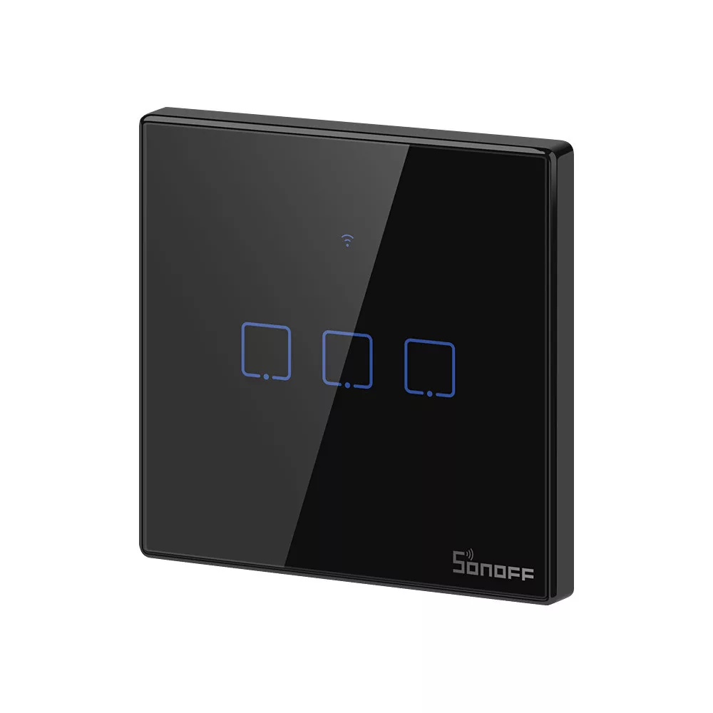A Sonoff TX a Sonoff okos lámpakapcsoló termékcsaládjának legújabb, 2019. nyáron megjelent verziója. Ez a hármas csillárkapcsoló 3 lámpa/áramkör vezérléséhez.Elődjéhez, a Sonoff T1-hez képest csak az előlap design-ja változott meg, a fehér mellett megjelent fekete színben is, valamint elérhető lett háromkapcsolós csillárkapcsolója is. A korábbi verzióhoz hasonlóan ez is elegáns üveg előlappal, érintőkapcsolóval van felszerelve. Beépített WiFi chip-jének köszönhetően internet-kapcsolattal rendelkező iOS (Apple) vagy Android mobiltelefonon futó App segítségével távolról is vezérelhetjük a lámpakapcsoló ki/be kapcsolását, és beállíthatunk időzített ki/be kapcsolást is. Az érintőkapcsoló segítségével a falon is kapcsolhatjuk természetesen a lámpát, ahogy egy hagyományos érintőkapcsolóval tennénk azt. A távoli elérés lehetősége megosztható a családtagokkal is. Tökéletes megoldás a bármilyen lámpa okosvezérléséhez. Használatával kényelmesen távolról is fel vagy lekapcsolhatjuk a kívánt lámpákat akkor is, amikor nem vagyunk otthon. Betörésmegelőzési megoldásként használva, beprogramozhatunk rajta időzített ki vagy bekapcsolást, hogy a külvilág azt higgye, otthon tartózkodunk.A TX T3 verzió a fekete előlapos verzió. A Sonoff T1-hez hasonlóan ez is fel van szerelve 433MHz-en működő rádióvezérléssel, melynek köszönhetően hozzáilleszthető rádiós távirányító, valamint a SmartWise rádióvezérlést alkalmazó kapcsolója is, amivel vezetékezés nélkül lehet alternatív kapcsolókat hozzákapcsolni a bevezetékezett kapcsolóhoz.A v3.5.4 eWeLink app verzió óta a kapcsoló átállítható impulzuskapcsolás (billenőkapcsoló) üzemmódra, illetve beállítható arra is, hogy a bekapcsolást követően előre megadott időt követően kapcsoljon le, azaz lépcsőházi időzített kapcsolásra is alkalmas.A TX T3 EU kapcsolók elegáns érintős üvegfelületén az érzékeny kapcsolórész szinte láthatatlan, amíg a kapcsoló nincs bekötve, 90% fényerővel világít, amikor a lámpa fel van kapcsolva, és 30% fényerővel, amikor standby-ban van.Terméktulajdonságok:Érintőkapcsoló - az üvegelőlapon érintőkapcsoló és az aktív WiFi kapcsolatot mutató LEDEU és magyar szabvány szerinti méret: 86x86mm a kapcsoló előlapja, ami a magyar szabvány szerinti előlap mérete, 34mm a teljes mélysége, a falba benyúló doboz szintén a magyar szabvány szerinti.433MHz-es rádióvezérlés támogatása – rádiós távirányítóval is kapcsolható, illetve SmartWise rádiós alternatív kapcsoló kapcsolható hozzá.Távvezérléssel való KI/BE kapcsolás – Bárhol is van, mostantól távolról ki vagy be kapcsolhatja a lámpakapcsolóval a világítástMobil App – Ingyenes iOS és Android mobil App: eWeLinkÁllapotlekérdezés – A mobil App-ban látszik a lámpakapcsoló aktuális állapota (be vagy kikapcsolt)Időzítés – Számos időzítési funkció elérhető: egy konkrét időpont beállítása, ismétlődő időpontok beállítása, visszaszámláló / timer.Megosztható másokkal – Hozzáférést adhat pl. családtagjainak a távvezérléshezKészülékcsoportok – Csoportba rendezheti készülékeit, és egy kattintással többet is ki vagy bekapcsolhatOkoscsoportok – Hőmérséklet, páratartalom vagy más külső érzékelőkhöz kapcsolva akár automatikusan is vezérelheti a ki/be kapcsolástKompatibilitás – Hozzákapcsolható hangvezérlés érdekében Amazon Alexa-hoz, Google Assistant-hoz, valamint IFTTT-hez és Google Nest-hez is Fontos: a WiFi-s lámpakapcsoló működéséhez nem csak fázisvezeték (ami minden korrekten bekötött kapcsolóaljzatban megtalálható), hanem nullavezeték is szükséges a kapcsolóaljzatban!