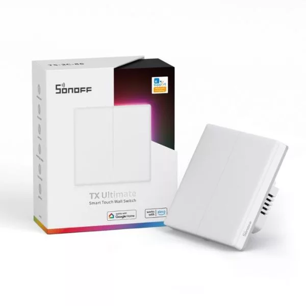 A Sonoff TX Ultimate, más néven Sonoff T5 EU a Sonoff legújabb, 2023 nyarán kiadott új terméke: egy Wi-Fi és eWeLink-Remote (Bluetooth) protokollt támogató okos villanykapcsoló. Más Sonoff termékekhez hasonlóan az is az eWeLink okosotthon rendszerhez kapcsolódik, és az eWeLink okostelefon app-ról vezérelhető. Az okos villanykapcsolót a helyi Wi-Fi routerhez kell párosítani, és az interneten keresztül mobiltelefonról távolról is vezérelhető, időzíthető, beálítható. Az okos érintős lámpakapcsoló legújabb verziójának legfőbb újdonsága az, hogy a kapcsoló teljes felülete érzékeny az érintésre, így nagyon kényelmes a használata. Bárhol megérintve azonnal fel / le kapcsol a villanykapcsoló. A gyári elegáns fehér érintős előlap lecserélhető, a gyártó több féle más előlapot is kínál hozzá.A kapcsoló egy, kettő és három áramkörös / érintőgombos verzióban is elérhető. A Sonoff TX Ultimate T5 EU kapcsoló oldalán vékony LED csík található, melyet számot funkcióra beállíthatunk. Számos gyári beállítást érhető el színes hangulatfény beállítására, pl. akár party fény üzemmódot is aktiválhatunk. De használhatjuk a fényt diszkrét éjszakai jelzőfény beállítására is, ehhez időzítési funkciói is a rendelkezésre áll. (A szokásos eWeLink app időzítésekkel nem csak a villanykapcsoló áramköreit tudjuk időzíteni, hanem a kapcsolón levő hangulatfényt is.) A kapcsoló fel- és le-kapcsolásakor (külön-külön beállítható) hang és fényjelzést is tud adni, valamint vibrálást is tud visszajelezni, ezeket tetszés szerint beállíthatjuk az eWeLink app-ban, vagy akár ki is kapcsolhatjuk, ha nincs rájuk szükség. Az eWeLink app beállításai között megadhatunk egy éjszakai "Ne zavarj" időszakot is, amikor a be- és kikapcsolás mindig csendes.Az egyes áramkörök (ki vagy bekapcsolt) állapotát is a hangulatfényre használt LED-csíkon levő LED-fény jelzi vissza, ennek színe és fényereje is beállítható külön-külön a ki és bekapcsolt állapotra is. Más Sonoff okos villanykapcsolókhoz hasonlóan a beépített WiFi chip-jének köszönhetően internet-kapcsolattal rendelkező iOS (Apple) vagy Android mobiltelefonon futó eWeLink app segítségével távolról is vezérelhetjük a lámpakapcsoló ki/be kapcsolását, megnézhetjük a pillanatnyi KI/Bekapcsolt állapotot, és beállíthatunk időzített ki/be kapcsolást is. Az érintőkapcsoló segítségével a falon is kapcsolhatjuk természetesen a lámpát, ahogy egy hagyományos érintőkapcsolóval tennénk azt. A távoli elérés lehetősége megosztható a családtagokkal is. Tökéletes megoldás a bármilyen lámpa és világítás okosvezérléséhez. Használatával kényelmesen távolról is fel vagy lekapcsolhatjuk a kívánt lámpákat akkor is, amikor nem vagyunk otthon. Betörés-megelőzési megoldásként használva, beprogramozhatunk rajta időzített ki vagy bekapcsolást, hogy a külvilág azt higgye, otthon tartózkodunk.A Sonoff más új termékeihez hasonlóan Bluetooth vevőegységgel és Bleutooth átjáró funkcióval van felszerelve, így a Sonoff Bluetooth vezetéknélküli eszközeiről (pl. Sonoff S-MATE modul, Sonoff R5 kapcsolók) távirányítható. A Sonoff Ultimate TX T5 kapcsolók is átállíthatóak impulzuskapcsolás (azaz billenőkapcsoló) üzemmódra, illetve beállíthatók arra is, hogy a bekapcsolást követően előre megadott időt követően kapcsoljanak le, azaz "lépcsőházi időzített kapcsolásra" is alkalmasak.A Sonoff TX kapcsolók két- és háromgombos csillárkapcsoló verziói beállíthatók az app-ban olyan úgynevezett interlock (más néven reteszelő vagy váltókapcsolási) üzemmódra, melyben az egyik áramkör kapcsoláskor a többi áramkör lekapcsol, így pl. redőnyvezérléshez vagy más motor vezérlésére is biztonsággal használhatók ezek a kapcsolók. Terméktulajdonságok:Teljes felületű érintőkapcsoló - bárhol megérintve kapcsolja az áramkör(öke)t /lámpá(ka)tHangulatfény / éjszakai jelzőfény funkció - opcionálisan beállítható hangulatfény és éjszakai fény funkciót is kínál a termék, mely időzíthető is.EU és magyar szabvány szerinti méret: 86x86mm a kapcsoló előlapja, ami a magyar szabvány szerinti előlap mérete, 34mm a teljes mélysége, azaz a normál mélységű fali aljzatban elhelyezhető86 mm-es sorolási távolság - két szorosan egymás mellé elhelyezett Sonoff TX kapcsolónak akkora helyre van szüksége, mint két hagyományos egygombos kapcsolónak, mivel az üveg előlap miatt nincs két egymás melletti kapcsolónak közös kettős kereteeWeLink-Remote (Bluetooth) vevőegységgel és átjáróval van felszerelve – a Sonoff eWeLink-Remote moduljaival és vezeték nélküli kapcsolóival távirányítható.Magyar nyelvű mobil App – Ingyenes iOS és Android mobil App: eWeLink, magyar nyelven isÁllapotlekérdezés – A mobil App-ban látszik a kapcsoló aktuális állapota (be vagy kikapcsolt)Távvezérléssel való KI/BE kapcsolás – Bárhol is van, mostantól a mobiltelefon app-ból az interneten át távolról ki vagy be kapcsolhatod a kapcsolótIdőzítés – Számos időzítési funkció elérhető: egy konkrét időpont beállítása, ismétlődő időpontok beállítása, visszaszámláló / timer, ciklusvezérlés.Időzített kikapcsolás - beállítható a villanykapcsoló arra is, hogy minden bekapcsolás után bizonyos idővel automatikusan kikapcsoljonImpulzus kapcsolás: beállítható a kapcsoló ú.n. impulzus kapcsolásra is, azaz egy megadott hosszúságú rövid kapcsolásra (pl. jellemzően 0,5 vagy 1 másodperc)Interlock / reteszelő / váltókapcsolási üzemmód - a két és háromgombos csillárkapcsoló verzió beállítható az app-ban olyan üzemmódra, amikor az egyik áramkör kapcsoláskor a többi áramkör lekapcsol, így pl. 