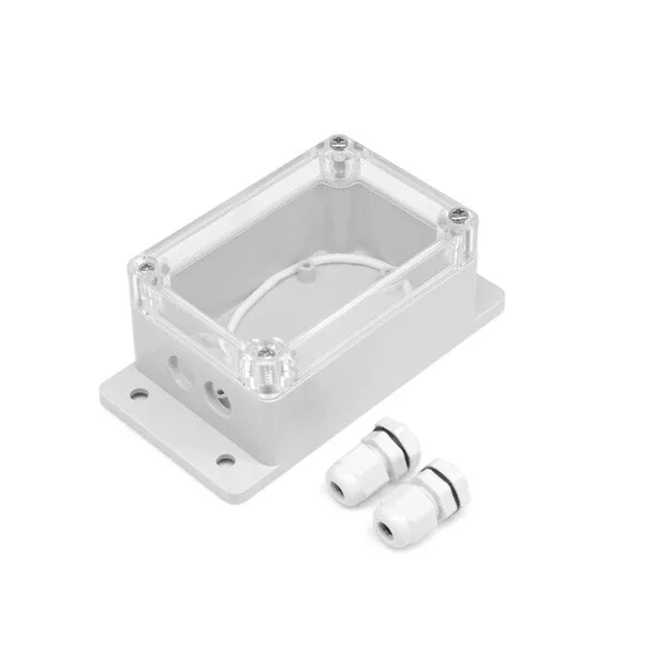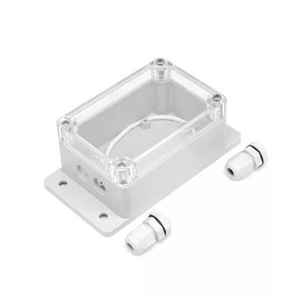 A Sonoff IP66 védettségű vízálló doboza a Sonoff Basic, RF (R2), RF (R3), TH10, TH16, POW R2 és Dual R2 okoskapcsoló relékkel kompatibilis vízálló védődoboz. Kültéri használatra és víznek kitett környezetben (akvárium, mosogató stb.) ajánlott a használata. 3 és 6,5 mm közötti átmérőjű vezetékekkel kompatibilis.A Basic és a RF relé teljes egészében, a többi relének a műanyag borításmentes alaplapja fér a védődobozba.