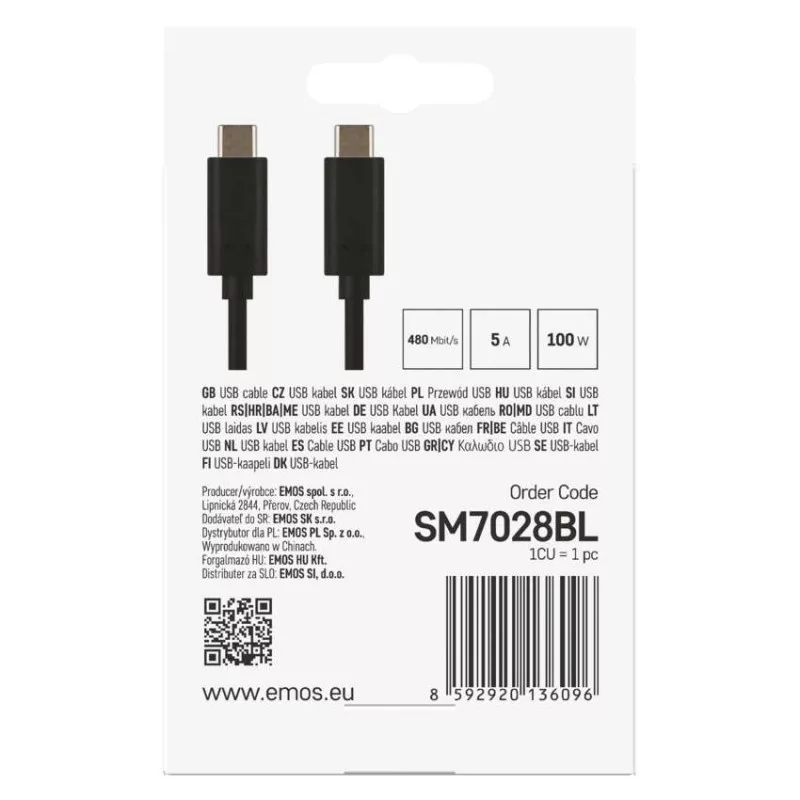adatátviteli sebesség: 480 Mbit/s (High Speed)|anyag: PVC|csatlakozók: „C” csatlakozó – „C” csatlakozó|értékesítési csomagolás: 1 db, kis doboz|használat: töltés/adat|hossz: 1 m|maximális áram: 5 A|maximális teljesítmény: 100 W|szín: fekete|USB verzió: 2.0