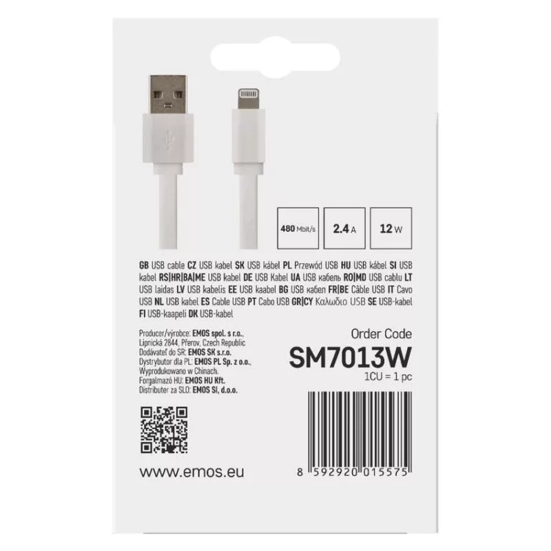 Töltő- és adatkábel USB-A 2.0 / Lightning MFi, 1 m, fehér
