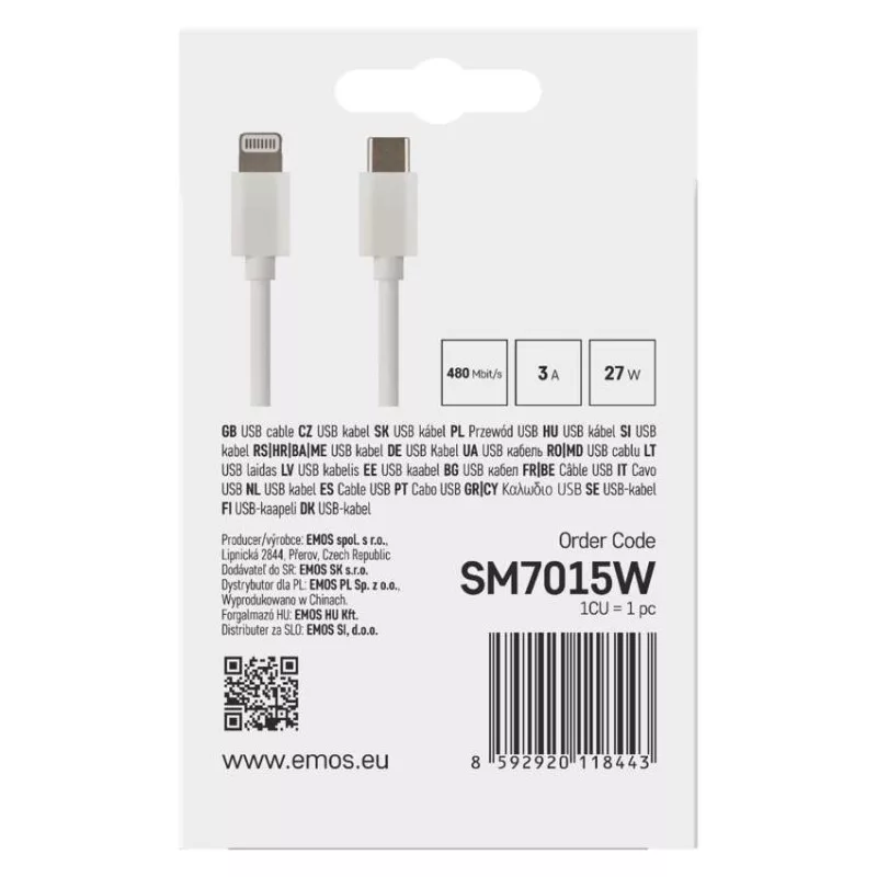 Töltő- és adatkábel USB-C 2.0 / Lightning MFi, 1 m, fehér