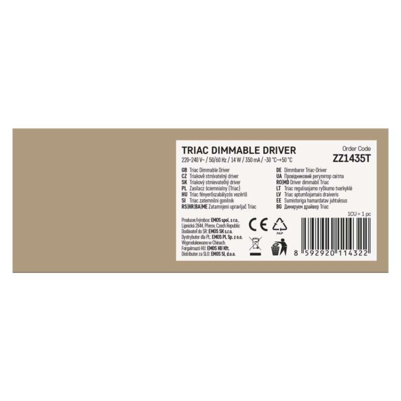 Triac dimmelhető meghajtó LED lámpatesthez 350mA 14W