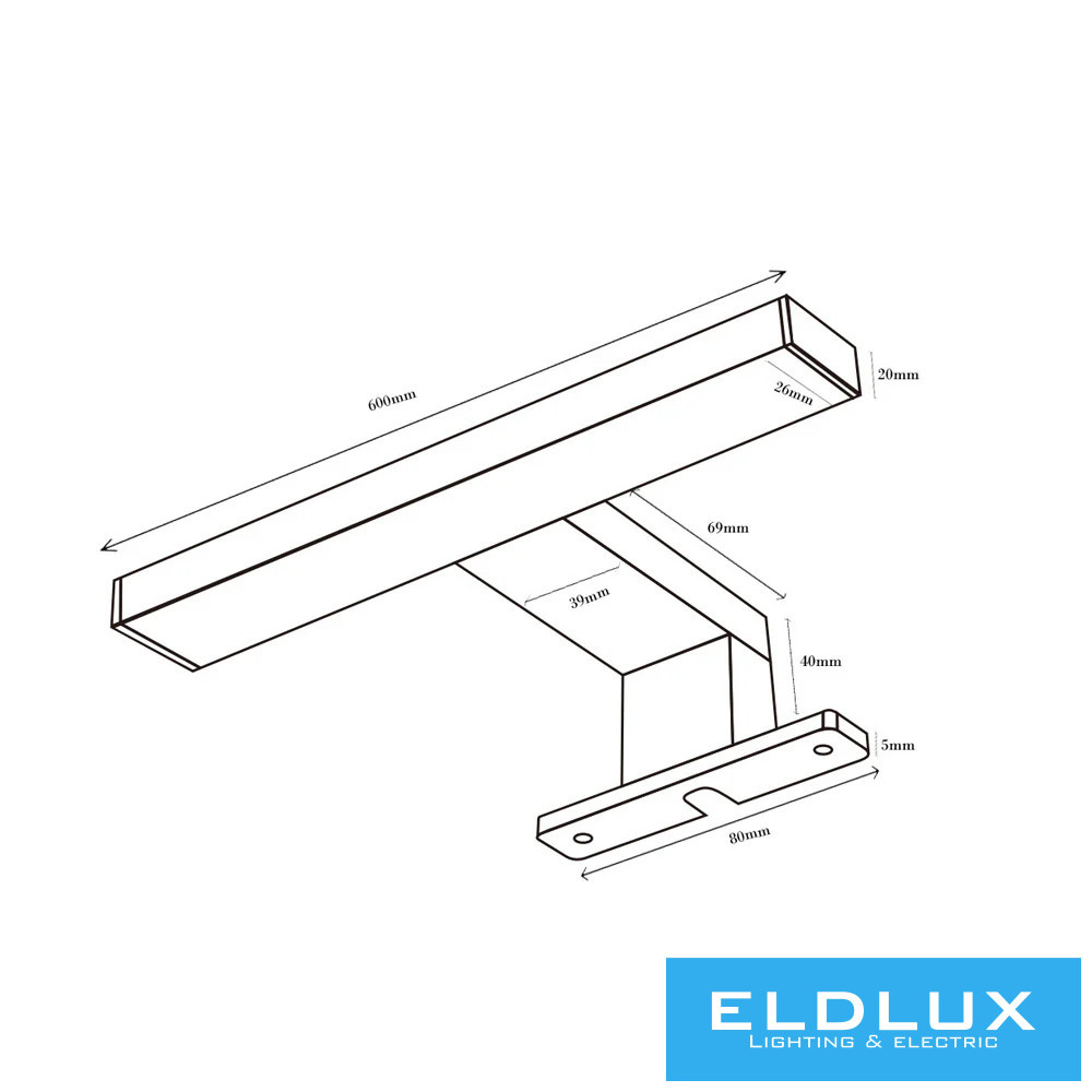 UNIVERSO Bútorra szerelhető lámpa 9w 980lm 4000k IP44 600x95x40mm króm