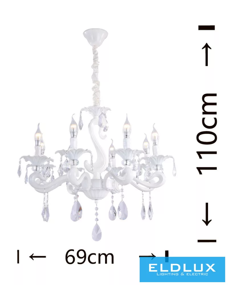 UNIVERSO Csillár 8 karos 8xE14 Max.40W D69x110cm fehér