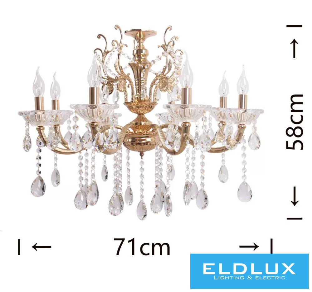 UNIVERSO Csillár 8 karos 8xE14 Max.40W D71x58cm arany