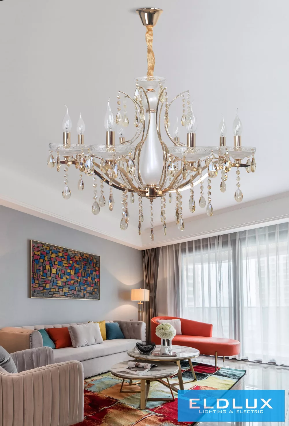 UNIVERSO Csillár 8 karos 8xE14 Max.40W D72x110cm arany