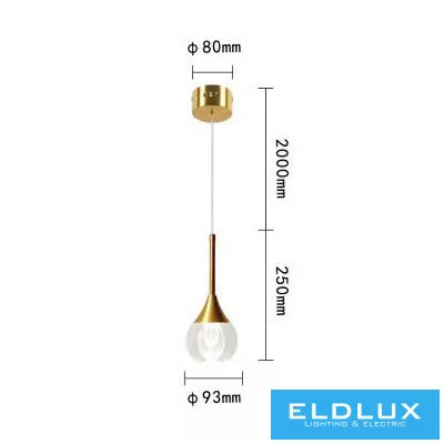 UNIVERSO Függeszték LED 5w 400lm 4000k ∅93x250mm IP20 arany