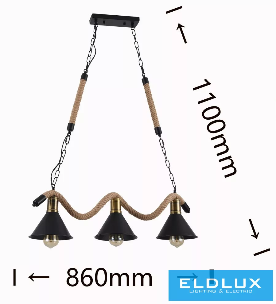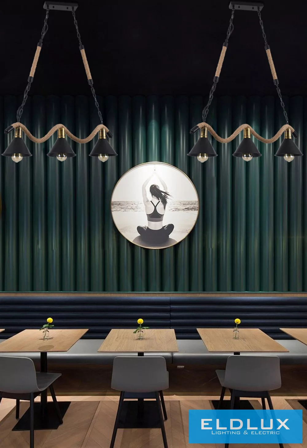 UNIVERSO Kender kötél csillár 3xE27 IP20 860x1100mm fekete