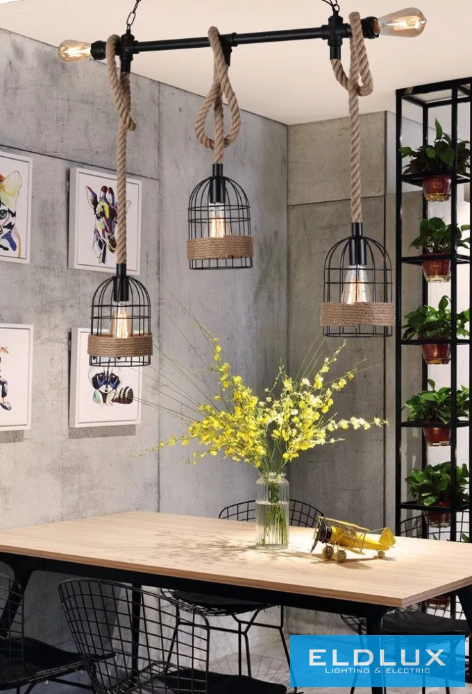 UNIVERSO Kender kötél csillár 5xE27 IP20 790x1200mm fekete