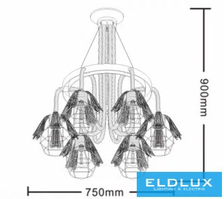UNIVERSO Kender kötél csillár 6xE27 IP20 D750x900mm fekete