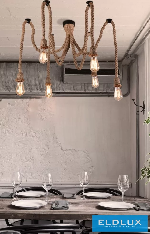 UNIVERSO Kender kötél csillár 6xE27 max. 240V 1200mm fekete