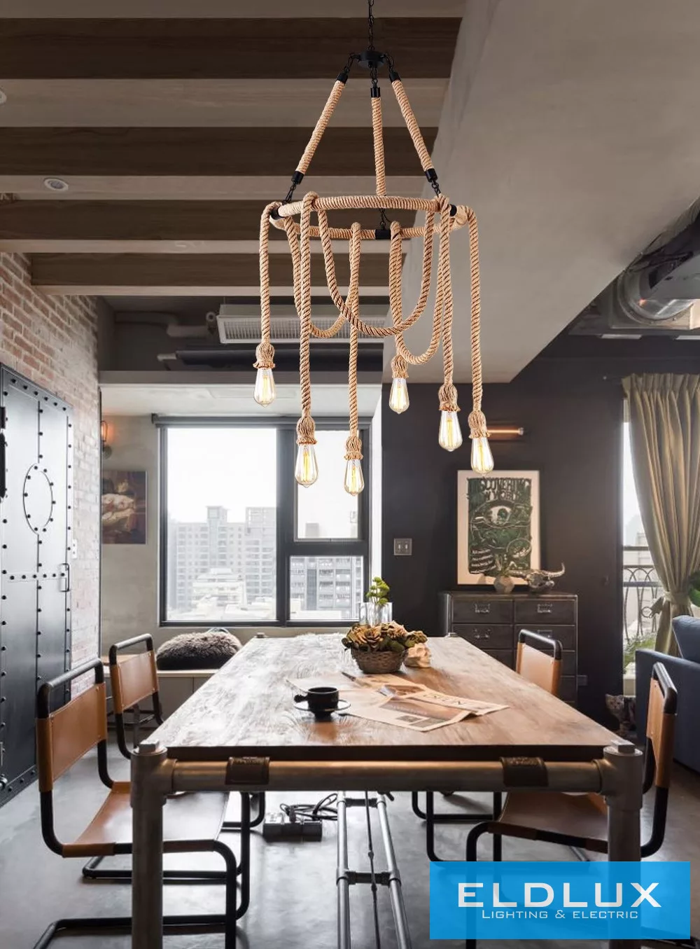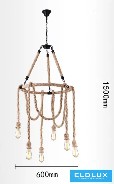 UNIVERSO Kender kötél csillár 6xE27 max. 240V ∅600×1500mm fekete