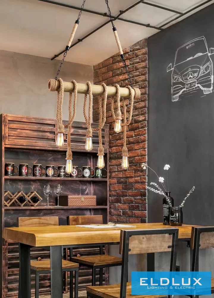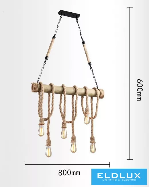 UNIVERSO Kender kötél csillár 6xE27 max. 240V ∅800×600mm fekete