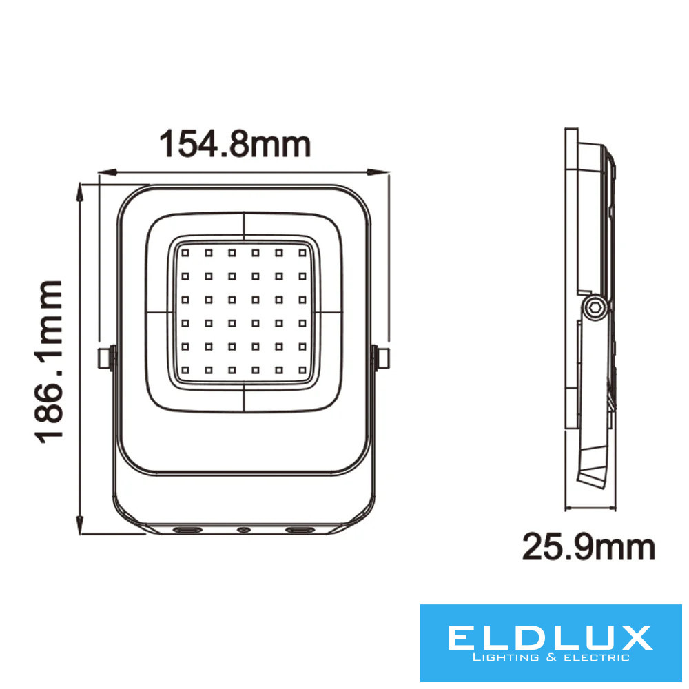 UNIVERSO LED reflektor 30w 2400lm 6500k 120° IP65 fekete 155x186x26mm
