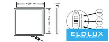 UNIVERSO Négyzet alakú falon kívüli LED panel 30w 3530lm CCT/kap. 120° IP20 Fehér 400x400x39mm