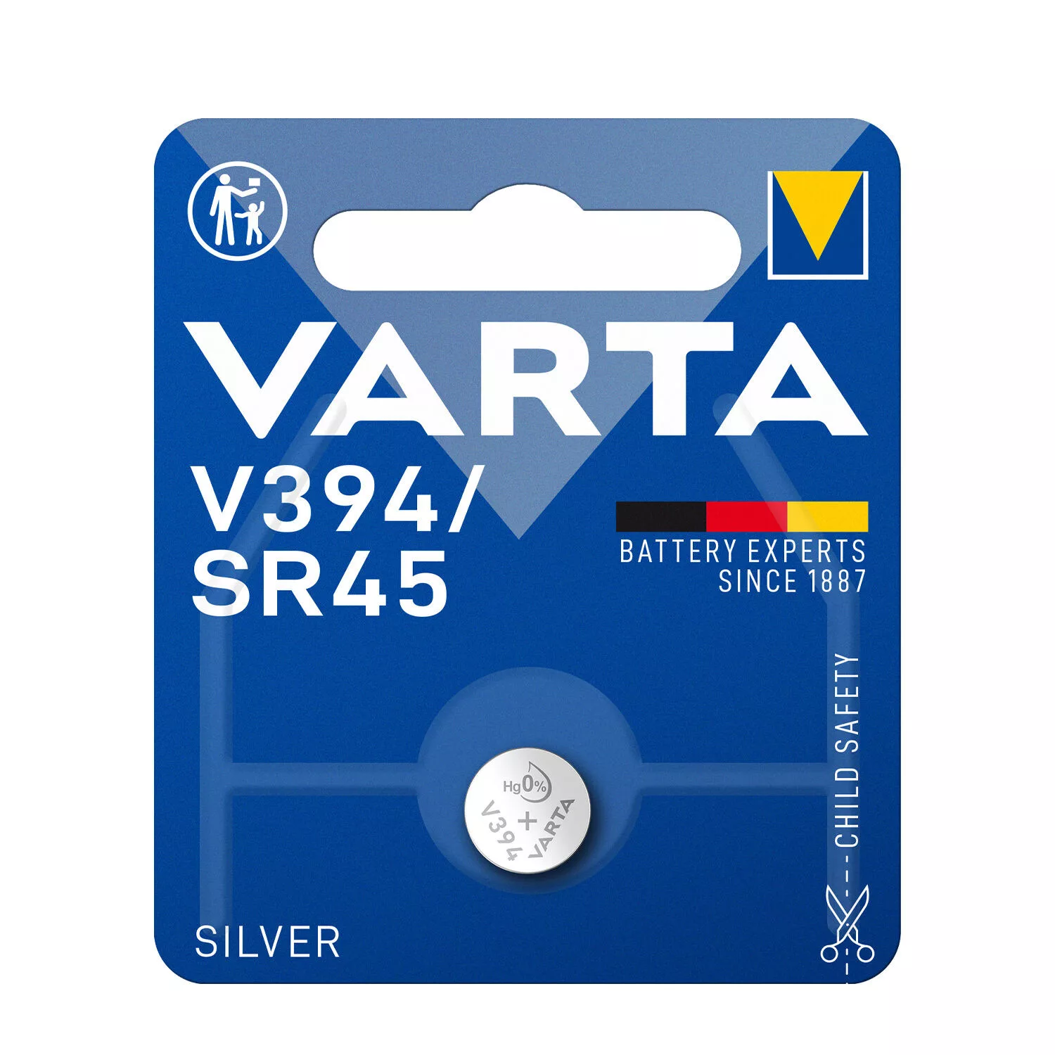A Varta V394 gombelemezüst-oxid elektrokémiai rendszerrel működik. Megnövelt 1.55V névleges feszültséggel és 58mAh kapacitással rendelkezik. Ütésálló, valamint rázkódásálló, így épségét sokáig megőrzi! Használata igazánbiztonságos, hiszen magas szivárgásállóságjellemzi. Átmérője 9,5mm, magassága 3,6mm.
