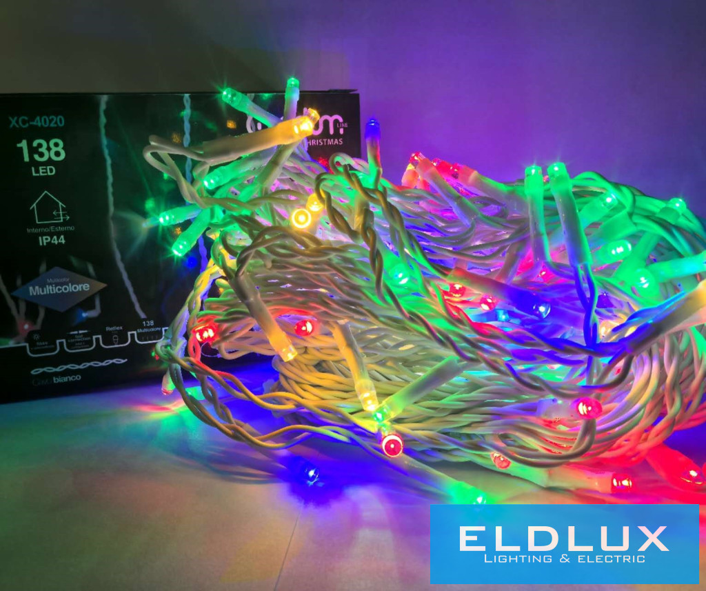 WISDOM fényfüggöny multi fényű 138LED 3m átlátszó kábellel 8 fun. IP44