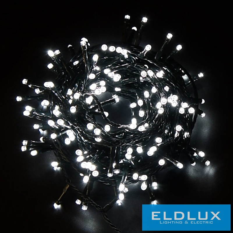 WISDOM fényfüzér hideg fényű 300LED 15m zöld kábellel 8 fun. IP44