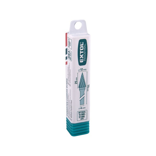 keményfém turbómaró (rotormaró), kúpos, hegyes orrú, 12×25mm átmérő/ 6mm szár, keresztfogazás