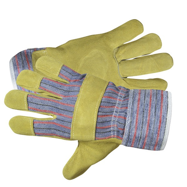 Kötött, varratmentes kombinált védőkesztyű marha hasított bőrből, bélelt tenyérrel, kézfej és mandzsetta pamutból.