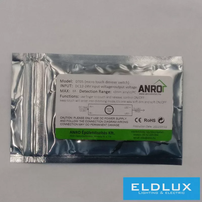 ELDLUX Sínbe beépíthető LED vezérlő érintős kapcsoló fényerőszabályzó (DC:12/24V 8A)