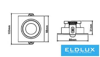 UNIVERSO süllyesztett spot lámpa 1xGU10 IP20 88x88x31mm kivágás:75X75mm fekete 5év