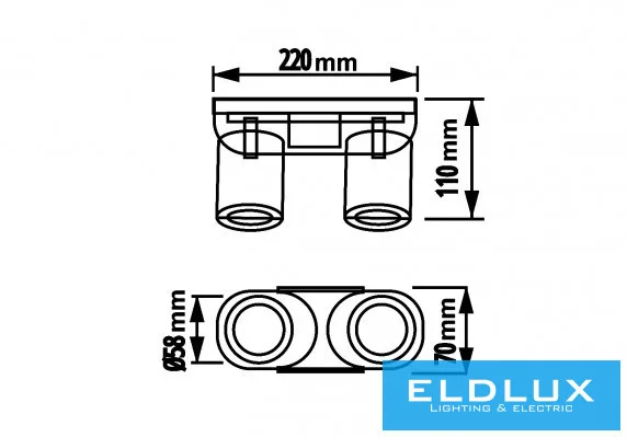 UNIVERSO Spot lámpatest 2xGU10 Max.35w IP20 220x70x110mm Fekete/Arany