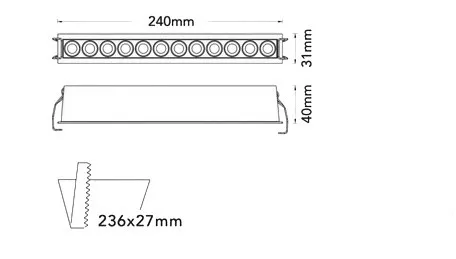UNIVERSO Süllyesztett spot lámpa 20w 1400lm CCT.kap RA90 24° IP20 Fehér 240x31x40mm kivágás:236x27mm 5év